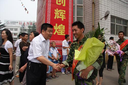 田錫軍在講話中指出,滄海橫流,方顯英雄本色。39名勇士用自己的堅強毅志和必勝信心,在災(zāi)區(qū)抒寫了可歌可泣的動人篇章。在緊急時刻,突擊隊勇士帶著蘭花人的深情厚意,排除重重困難,冒著余震不斷的危險,日夜兼程,千里馳援災(zāi)區(qū),先后轉(zhuǎn)戰(zhàn)都江堰市的安龍和玉堂兩鎮(zhèn)實施安裝工作。在過去的三十多個日日夜夜里,突擊隊勇士們艱苦奮戰(zhàn),不辱使命,充分發(fā)揚攻堅克難、敢于創(chuàng)新、特別能吃苦、特別能戰(zhàn)斗、特別能奉獻的精神,敢打硬仗,敢于拼搏,克服了時間緊、任務(wù)重、自然環(huán)境惡劣等重重困難,按照市委市政府要求,提前25天高標準、高質(zhì)量地完成了3424套過渡安置房的援建任務(wù),為災(zāi)區(qū)人民恢復生產(chǎn),重建家園作出了積極貢獻。是他們以自己的實際行動,譜寫了一曲曲救災(zāi)援建的贊歌,履行了蘭花集團對社會的神圣職責,表達了蘭花員工與災(zāi)區(qū)人民心連心、同呼吸、共命運的深厚感情,展示了蘭花員工的風采,塑造了蘭花的形象,踐行了蘭花員工心系災(zāi)區(qū)、支援災(zāi)區(qū)的堅定諾言,他們沒有辜負集團公司的厚望和重托,在他們身上體現(xiàn)出的是蘭花人不怕苦、不怕累、敢打硬仗、能打勝仗的工作精神,你們是公司的驕傲和榮耀,也是全體員工學習的榜樣。這不僅是晉城市人民的光榮,也是蘭花的光榮,災(zāi)區(qū)人民感謝他們,晉城人民感謝他們,集團公司感謝他們!