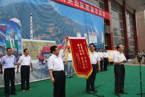 迎接儀式結(jié)束后,公司在北巖礦俱樂部門前舉行了歡迎會,會議由紀檢書記、工會主席殷明主持。會上,此次帶隊出征的突擊安裝隊隊長----北巖礦副總經(jīng)理張憲法含熱淚向各位領(lǐng)導、廣大員工及家屬匯報了他們轉(zhuǎn)戰(zhàn)災(zāi)區(qū)、日夜奮戰(zhàn)的經(jīng)過,真切的英雄事跡深深地感動了在場的每一個人。他說:“在安裝的過程中,所有的同志們冒著高溫酷暑和蚊蟲叮咬,忍受著極為惡劣的環(huán)境條件,付出了大量艱苦的勞動。他們每天工作都在十五個小時以上,一個個汗流浹背,衣服都濕透了,但沒有一個人停下來稍作休息,幾十天來他們沒有穿過干衣服,沒有洗過一次澡。有的同志虛脫暈倒了,有的同志被破碎的玻璃扎破了,但他們沒有一個休息的,總是在短暫的調(diào)整或把傷口簡單的包扎處理后,便又一瘸一拐地投入到工作之中。在此次援建中,我們成立了臨時黨支部,許多隊員向黨組織遞交了入黨申請書,其中常進、楊義峰兩位同志還光榮地加入了中國共產(chǎn)黨。我們不拿群眾一針一線,以鐵的紀律全心全意支援災(zāi)后重建,夜以繼日地加班加點,這種大無畏精神得到了當?shù)卣屠习傩盏母叨荣潛P?!敝v到此處,場下響起了經(jīng)久不息的掌聲。