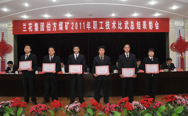 圖為六名技術(shù)標(biāo)兵正在領(lǐng)獎(jiǎng)