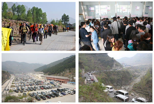 今年的五一小長假主要呈現(xiàn)如下四大特色。一是自駕游占主角。以家庭、親朋好友、車友俱樂部等為旅游主體的自駕游游客增勢迅猛,自駕游成了王莽嶺旅游的一道亮麗風(fēng)景線。和去年相比,自駕游比重明顯增加。從小長假首日開始,本地及外地自駕車游客開始大量進(jìn)入景區(qū),容納1000輛轎車的停車場每天到11點(diǎn)左右爆滿;二是短線游成首選。王莽嶺天氣以晴天為主,空氣涼爽,近郊游、自駕游、家庭游成短線游游客出游的主要方式。據(jù)統(tǒng)計(jì),散客和團(tuán)隊(duì)大多以周邊晉城、長治、太原、新鄉(xiāng)及焦作為主;三是驢友漸多成趨勢。王莽嶺景區(qū)是國家級戶外健身活動(dòng)基地,隨著健身設(shè)備設(shè)施的進(jìn)一步完善,越來越多的驢友(背包客)來到王莽嶺,進(jìn)行探險(xiǎn)、爬山及穿越,成為景區(qū)的一大亮點(diǎn)。據(jù)統(tǒng)計(jì),這些人和去年相比,猛增了2倍多;四是未開放景點(diǎn)受追捧。王莽嶺未開放的二環(huán)線、昆山溶洞、劉秀城、造壁古寨、馬武寨、抱犢溝等景點(diǎn),受到步行驢友一族的青睞。