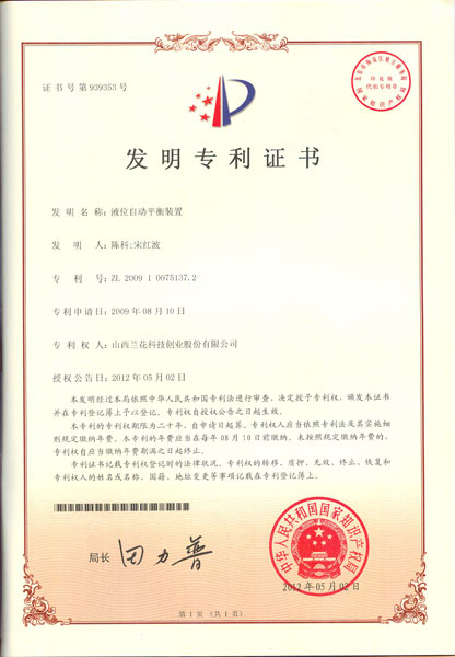 本網(wǎng)訊 近日,公司技術(shù)中心申請的發(fā)明專利“液位自動平衡裝置”獲得國家知識產(chǎn)權(quán)局授權(quán)。