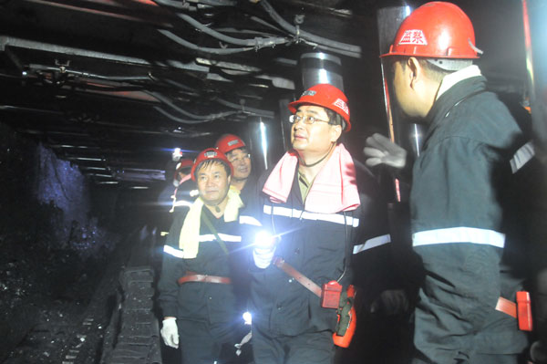 按照全省安全責(zé)任掛牌制度要求,莒山煤礦是曹樂正的包保單位。曹樂正一行到礦后就深入井下ZF305工作面現(xiàn)場,向隨行的礦領(lǐng)導(dǎo)詳細(xì)了解該礦采場布局、原煤生產(chǎn)、煤炭儲量、巷道支護(hù)以及接續(xù)工作面的準(zhǔn)備情況等,對該礦在井下復(fù)采點(diǎn)多面廣戰(zhàn)線長,工作面搬家頻繁,采掘條件艱苦,工作環(huán)境惡劣等條件下,保持了安全生產(chǎn)4221天的好成績,給予了充分的肯定。