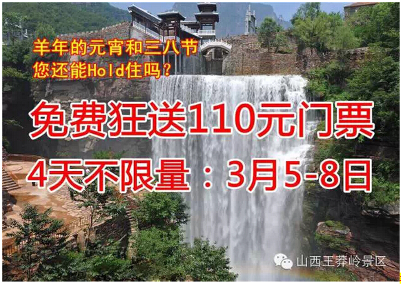 元宵節(jié) 三八節(jié),王莽嶺 免門票 不限量!