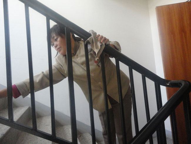 蘭花物業(yè)保潔員清理樓層衛(wèi)生