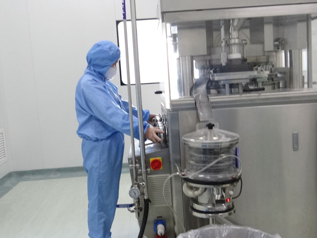 藥業(yè)公司壓片工在進(jìn)行顆粒壓片