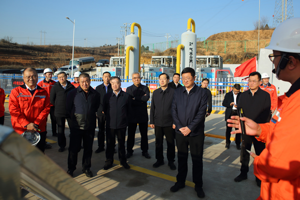 在煤層氣公司,李仲明一行深入4#增壓區(qū)、演禮辦公區(qū)等地現(xiàn)場調(diào)研,通過觀看展板、查看資料、觀摩無人機(jī)巡檢、觀看專題片等,詳細(xì)了解了該公司全方位推進(jìn)高質(zhì)量發(fā)展的情況,對煤層氣公司創(chuàng)新黨建特色品牌、增儲上產(chǎn)取得豐碩成果、效益持續(xù)翻番、安全根基不斷夯實的成績給予高度評價。李仲明強(qiáng)調(diào),煤層氣公司緊扣我市構(gòu)建"1+5"現(xiàn)代產(chǎn)業(yè)體系的戰(zhàn)略布局,提出五年工作規(guī)劃,步步為營,拉高標(biāo)桿、加壓奮進(jìn),持續(xù)增儲上產(chǎn)、完善儲運(yùn)體系和推動全產(chǎn)業(yè)鏈發(fā)展,實現(xiàn)了高質(zhì)量發(fā)展,發(fā)展經(jīng)驗值得學(xué)習(xí)和推廣。