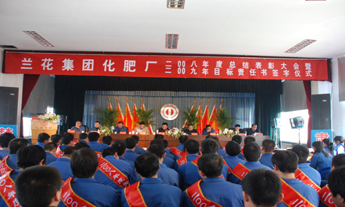 2月13日,化肥廠隆重召開2008年度總結(jié)表彰暨2009年度目標(biāo)責(zé)任書簽字大會,對2008年度的工作進行全面的回顧總結(jié),對2009年的工作進行詳細的安排部署,并層層簽定目標(biāo)責(zé)任書。