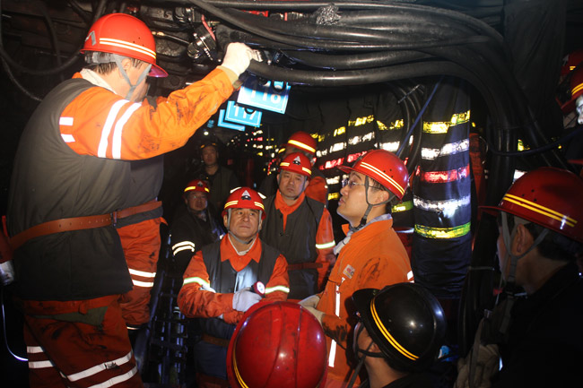 本網(wǎng)訊 12月3日,國家安監(jiān)總局副局長楊富在省、市安監(jiān)局負(fù)責(zé)人的陪同下到唐安礦調(diào)研,了解瓦斯抑爆裝置在井下使用情況。股份總經(jīng)理陳勝利參加調(diào)研。