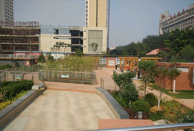 人民廣場改造規(guī)劃立意以巍巍太行山之山水風(fēng)情為特點,結(jié)合中國古典園林設(shè)計手法,旨在創(chuàng)造現(xiàn)代城市山水園林的景觀風(fēng)貌。廣場地上最外部為綠色構(gòu)成的綠脊草坡,有效阻擋外界嘈雜的車流環(huán)境,又為游人提供了開闊的綠化休閑場所。中間為草坡中曲折的木質(zhì)道路,道路依地勢轉(zhuǎn)而上下,有效的在場地內(nèi)創(chuàng)造出高低錯落的交通流線。