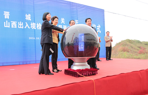 10月9日,晉城海關(guān)、晉城國檢正式入駐蘭花國際物流園區(qū),實(shí)現(xiàn)開關(guān)開檢運(yùn)營,為物流公司架起溝通世界、接軌國際的橋梁。圖為張九萍、吳海平、武宏文、鄭慧敏等領(lǐng)導(dǎo)共同啟動開檢按鈕。(郝婭婧)