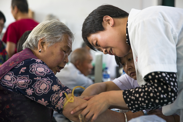 望云煤礦醫(yī)務(wù)人員不辭辛苦深入扶貧村開展義診活動(dòng),受到村民好評(píng)。