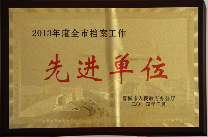 2014年3月,公司榮獲“2013年度全市檔案工作先進(jìn)單位”