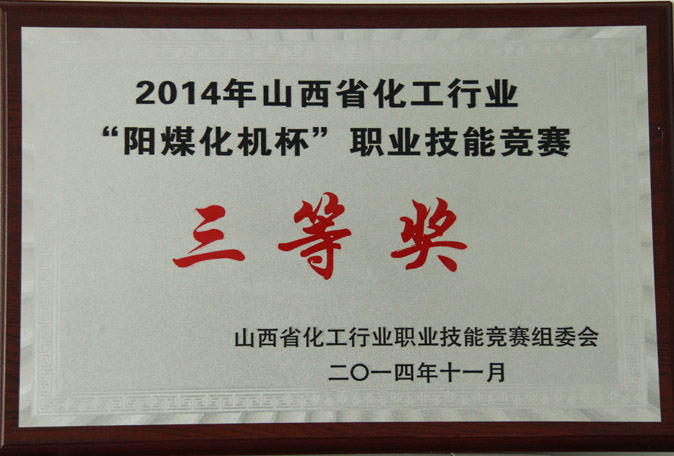2014年11月,公司榮獲2014年度山西省化工行業(yè)“陽煤化機杯”職業(yè)技能大賽三等獎