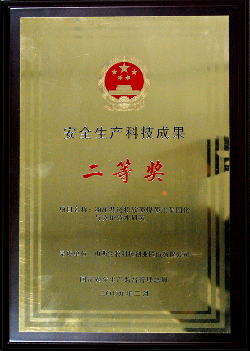 2009年2月,公司榮獲“安全生產(chǎn)科技成果二等獎”