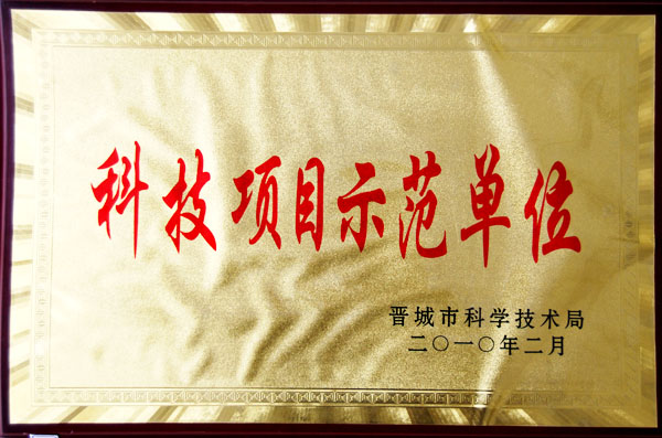 2010年2月,晉城市科學技術局授予公司科技項目示范單位