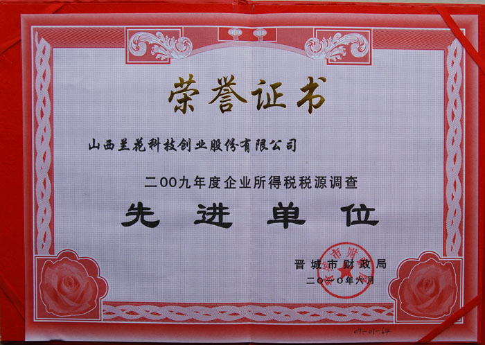 2010年6月,公司榮獲2009年度企業(yè)所得稅源稅調(diào)查“先進(jìn)單位”