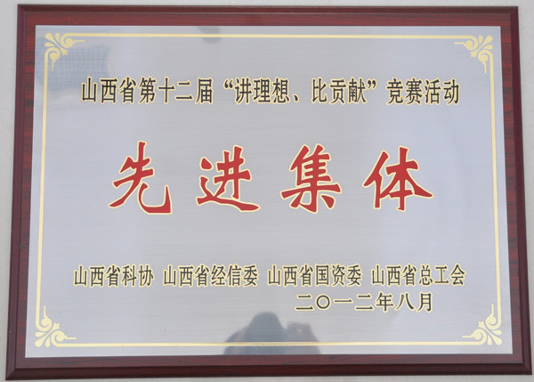2012年8月,公司榮獲山西省第十二屆“講理想、比貢獻(xiàn)”競賽活動先進(jìn)集體