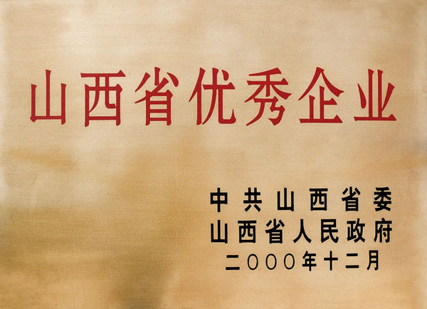 2000年12月,榮獲省委、省政府頒發(fā)的山西省優(yōu)秀企業(yè)稱(chēng)號(hào)