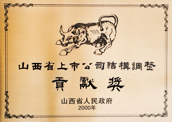 2000年,榮獲山西省政府頒發(fā)的山西省上市公司結(jié)構(gòu)調(diào)整貢獻(xiàn)獎(jiǎng)