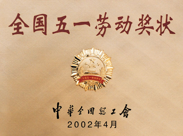 2002年4月,榮獲中華全國(guó)總工會(huì)頒發(fā)的全國(guó)五一勞動(dòng)獎(jiǎng)狀