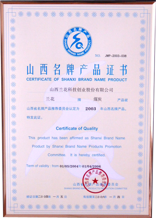 2004年1月,“蘭花”牌煤炭被評為2003年山西名牌產(chǎn)品