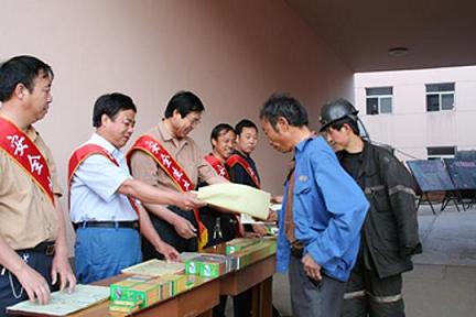 礦領(lǐng)導(dǎo)在向職工發(fā)放宣傳資料