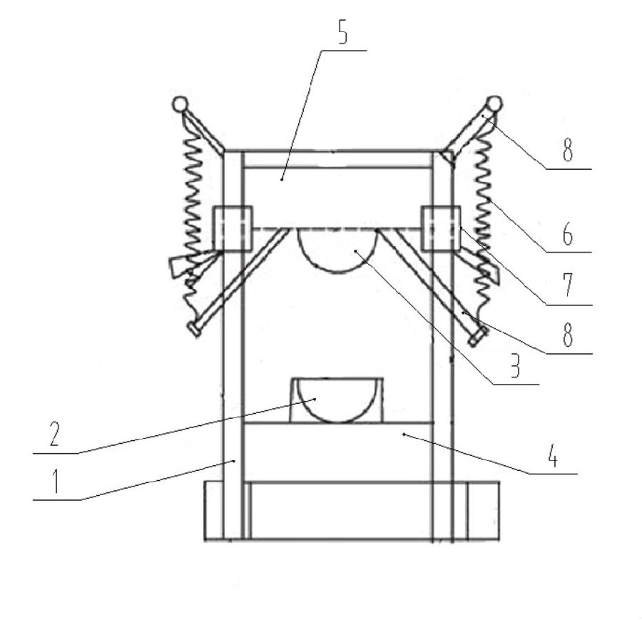 圖中:1-立體架,2-凹模,3-凸模,4-凹模座,5-凸模座,6-彈簧,7-滑動套,8-連桿。